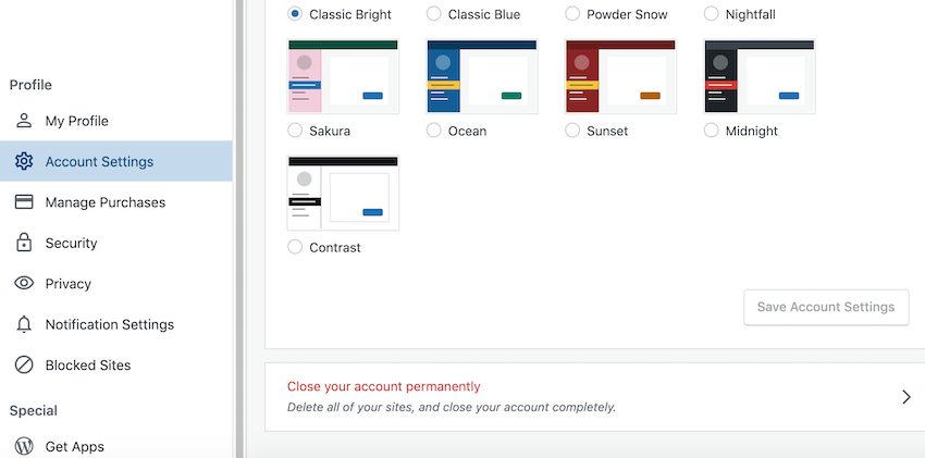Nota: Si tiene algún plan u otras actualizaciones en WordPress.com, deberá cancelar sus compras activas antes de eliminar su cuenta.